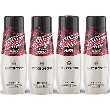 4-Pack 14.9-Oz SodaStream Zero Sugar Drink Mix (MTN Dew Code Red) for $24.99 - $7.50 when you clip the coupon on the product page - 5% when you check out via Subscribe & Save =