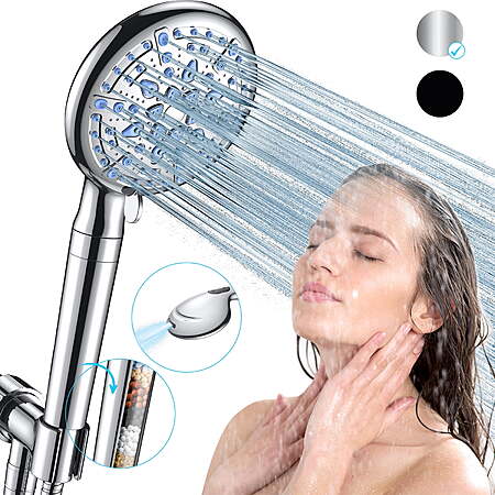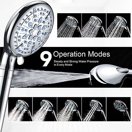 Ophanie 9 Setting Handheld Shower Head,High Pressure Shower Head with Filter, Hard Water Softener with 70" Hose Extension Spray Nozzle Shower,Silver $15.99