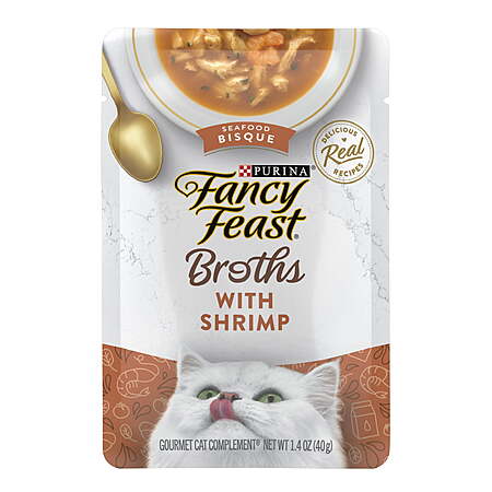 Purina Fancy Feast Broths Shrimp Seafood Bisque Wet Cat Food, 1.4 oz + $0.50 Walmart Cash $1.48