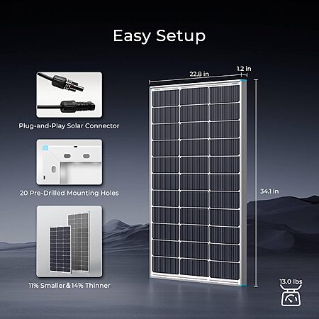 Renogy 100W 12V Solar Panel, RNG-100D-SS, Single Panel $59.99