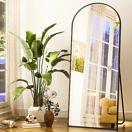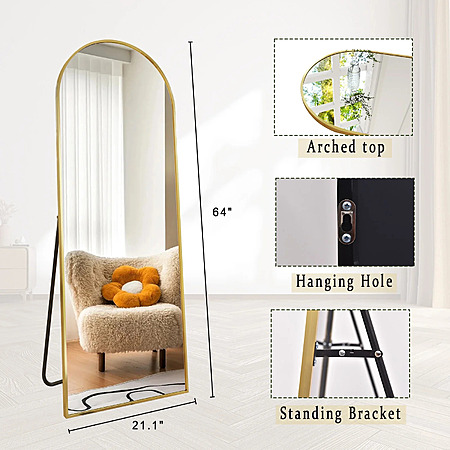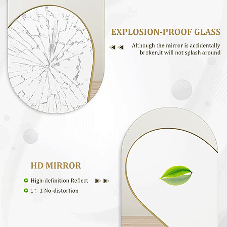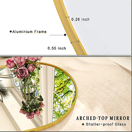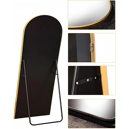 - Unique Design: The top of the floor mirror is designed with a unique smooth arched-top frame, which especially attracts people's attention and highlights the beauty of the mirror. The thin aluminum alloy frame makes the mirror looks more classic and it is suitable for dressing in any room.