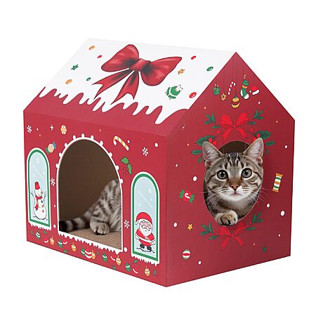 16.5''x12''x15'' Western Home Christmas Themed Indoor Cardboard Cat Scratcher House (Christmas Tree & Bow) $14.99 + Free Shipping w/ Prime or on $35+