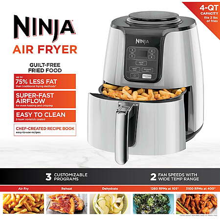 Model: Ninja 4Qt Air Fryer, Nonstick Basket with Crisper Plate, 1550 Watts, White