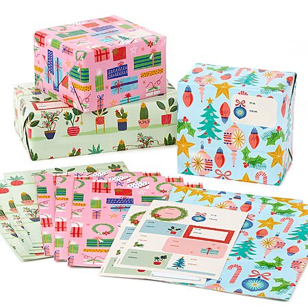 • 12 Folded Sheets: Each sheet of flat rapping paper measures approximately 20" by 30" and is folded to 7.5" x 10"; Purchase includes a variety of gift tag stickers in coordinating designs