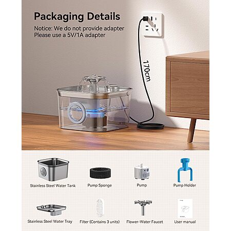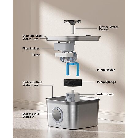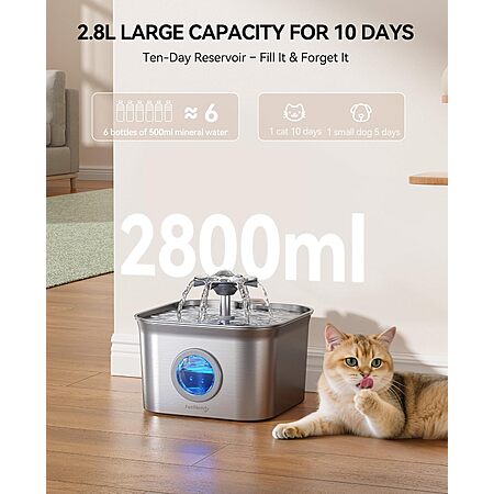 2.8L FEELNEEDY Stainless Steel Dishwasher-Safe Pet Water Fountain w/ 3-Count Filters $19.19 + Free Shipping w/ Prime or on $35+