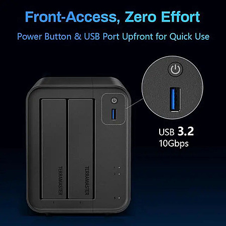 The F2-425 is the upgraded successor to the previous-generation F2-212, now powered by the all-new TOS 6 operating system. Compared to its predecessor, the F2-425 features a more powerful Intel x86 N5095 quad-core processor, 4GB DDR4 RAM, and a 2.5GbE network port, with enhanced 4K video transcoding capabilities. Perfect for home photo backups and multimedia entertainment