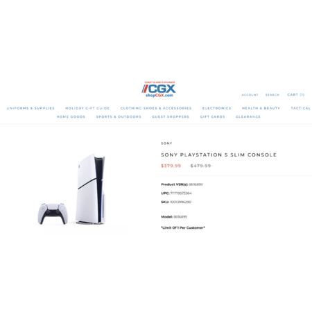 Sony Playstation 5 Slim Disc Edition Console, 1TB [Military @ CGX] $379.99 + Free Shipping
