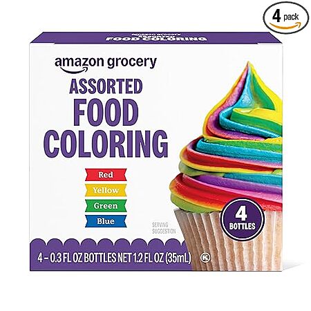 Amazon Grocery, Assorted Food Coloring, Contains Red, Blue, Green, Yellow Bottles, 1.2 oz $1.26