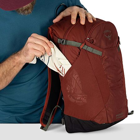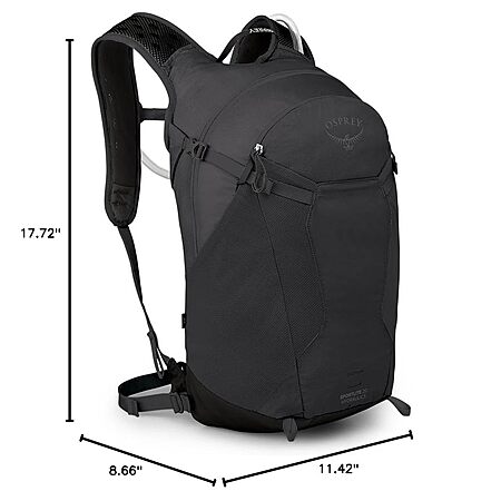 - Take on adventure with the Osprey Packs Sportlite 20L Backpack. It is made of bluesign® approved, 100% recycled 100D high-tenacity nylon that has been treated with DWR to help repel water. The panel loading design makes it easy to access, and its internal hydration sleeve holds the included 2.5-liter reservoir to help you stay hydrated on the go. The flexible, vented EVA shoulder straps have a smooth spacer mesh contact surface. Osprey Packs Sportlite 20L Backpack Black/Dark Grey - Technical Packs at Academy Sports