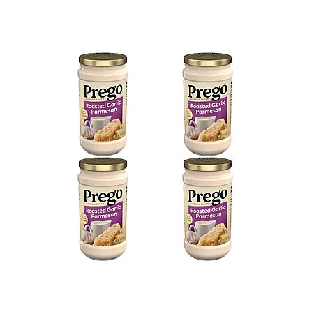 Prego Alfredo Pasta Sauce with Roasted Garlic and Parmesan Cheese, 14.5 oz Jar (Pack of 4)~$6.68 @ Amazon