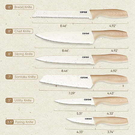 Carote 12Pcs Kitchen Knife Set with Blade Guards, White Granite Ceramic Knife, Stainless Steel $12.59