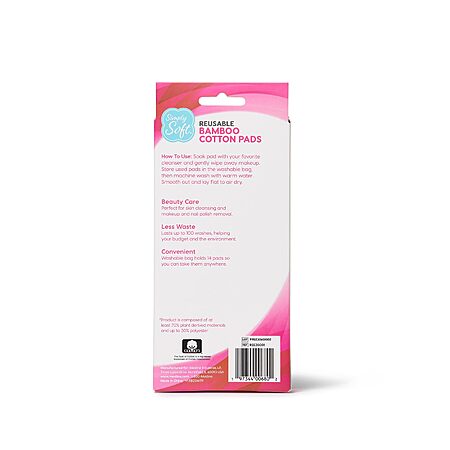 Amazon[amazon.com] has 14-Piece Simply Soft Reusable Cotton Makeup Remover Pads (7 Rounds & 7 Squares w/ 1 Washable Mesh Bag) on sale for $4.82. Shipping is free w/ Prime or on $35+.