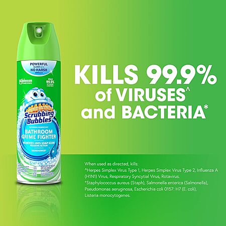 Model: Scrubbing Bubbles Bathroom and Shower Cleaner Disinfectant Aerosol, Foaming Action Bathroom Grime Fighter, Rainshower Scent, 20oz