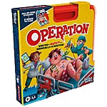 You’re—BZZZT!—basically a doctor. It’s the favorite kids board game with exciting updates! In this edition of the Operation game, choose from 2 ways to play: classic gameplay in Hospital mode or an edge-of-your-seat frenzy in Emergency mode. In Hospital mode, little doctors draw Bandage cards for wacky ailments. The suspense builds as they try to keep their hands steady while operating on Cavity Sam or—BZZZT!—his red nose lights up! In Emergency mode, the race is on to remove as many ailments as possible before time’s up. But oops! If the tweezers hit the side, Cavity Sam will burp, yelp, and make other hysterical sounds that keep kids giggling! In both modes, whoever removes the most ailments wins—and “heals” their patient. This preschool game comes in an all-in-1 carrying case with storage, so it’s a great kids travel game for anytime, anywhere play. Operation and Hasbro and all related trademarks and logos are trademarks of Hasbro, Inc. Includes gameboard and attached tweezers, 12 ailments (including rubber band), 12 cards, and instructions. Ages 6 and up For 1 or more players. Requires 3x 1.5V AA Alkaline Batteries (Not Included.) Adult assembly required.