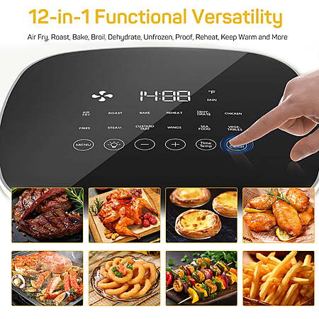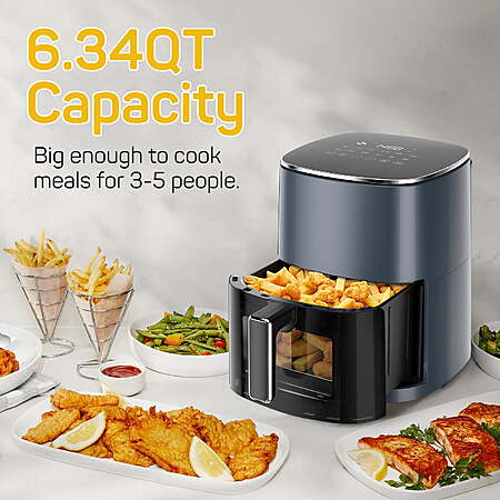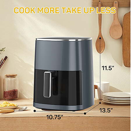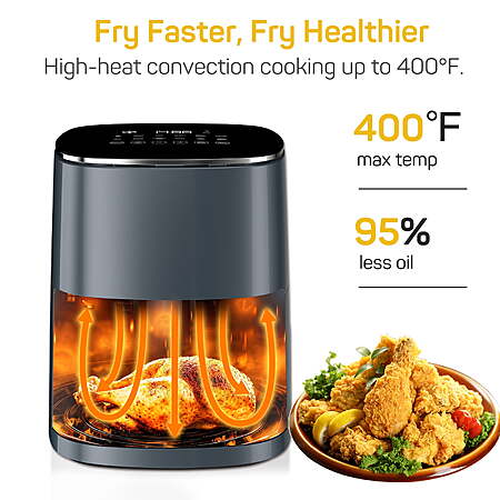 | Product Description: | This Air Fryer is a versatile kitchen appliance designed for busy families, featuring a spacious 6.34-quart capacity in a compact design. Powered by 1700W Turbo Blaze Technology, it delivers golden, crispy, and juicy results in minutes, allowing you to spend less time cooking and more time with loved ones. This multifunctional cooker can Air Fry, Roast, Bake, Broil, Reheat, and Keep Warm, making it an ideal alternative to traditional ovens, microwaves, and dehydrators. Perfect for both small families and large gatherings, it helps declutter your countertop while promoting healthier cooking with up to 95% less oil. Enjoy delicious, guilt-free meals and say goodbye to deep frying! Quick View Versatile Cooking: Air Fry, Roast, Bake, Broil, Dehydrate, Unfrozen, Proof, Reheat, and Keep Warm functions Digital LED Touchscreen, Built-in Viewing Window, Auto Shut-off Healthier Frying with 95% Less Oil Fast& Efficient Cooking: 400°F Max Temperature 6-Qt Capacity & Compact Design Easy to Clean: with safe nonstick coating ETL Certified [Versatile Cooking]: Enjoy 12 cooking modes including Air Fry, Roast, Bake, Broil, Dehydrate, Unfrozen, Proof, Reheat, and Keep Warm—an ideal replacement for ovens, microwaves, and dehydrators. [Built-in Viewing Window]: The convenient viewing window lets you monitor your cooking progress without opening the fryer, ensuring consistent temperatures and perfectly crispy results every time. [Spacious Capacity]: With a 6.34 quart capacity, this air fryer is perfect for family meals, maximizing cooking space while keeping your kitchen organized. [Air Crisp Technology]: Equipped with 1700W Turbo Blaze technology, it uses 400°F superheated air to deliver hot, crispy results with little to no oil, cooking frozen foods quickly for an extra-crispy finish. [Healthier Frying]: Enjoy your favorite fried foods with up to 95% less oil, achieving the same crispy textures as traditional deep frying without the guilt. [Fast & Efficient Cooking]: Advanced rapid air circulation technology allows you to prepare full meals quickly—perfect for busy days with crispy fries, roasted chicken wings, and more. [Easy to Clean]: Featuring dishwasher-safe parts and a nonstick-coated basket and crisper plate, this air fryer is easy to maintain. Avoid metal utensils and abrasive cleaners for long-lasting use. 6 Qt Compact Air Fryer with Digital LED Touchscreen 400°F Electric Hot Oven [Product Dimensions]:10.5"D x 12.9"W x 13.6" [Accessories Included]:Cooking Pot, Main Unit, Control Panel, Frying Plate, Cooking Pot Handle, Air Inlet, Air Outlet, Cable with Plug |