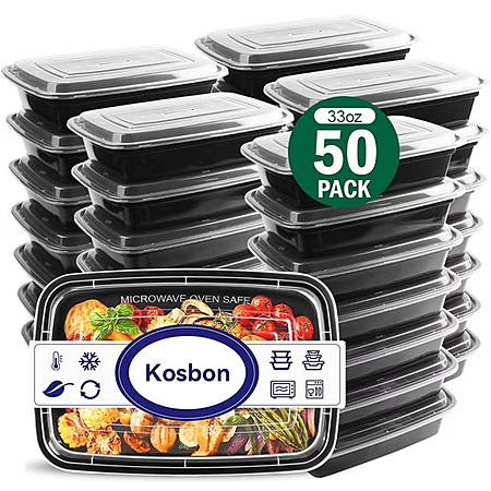 Meal Prep Containers, 50 Packs Plastic Food Storage Containers with Lids, 32oz Bento Box Reusable, To Go Containers Disposable, BPA Free $16.79