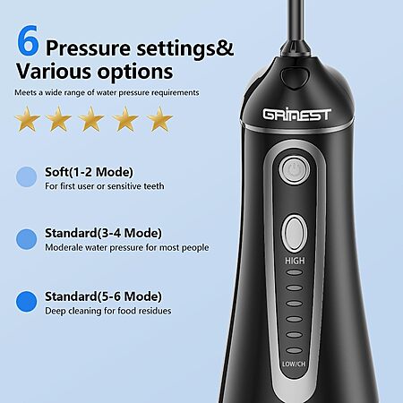Grinest Rechargeable Cordless Water Dental Flosser w/ 6-Nozzles & U-Shaped Nozzle $7.99 + Free Shipping w/ Prime or on $35+