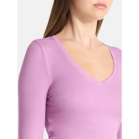 V-Neck Ribbed Top with Long Sleeves for Women from No Boundaries