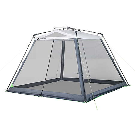 | Product Description: | Ozark Trail, 10' x 10' Instant Screen House is the perfect shade option for camping, family picnics, backyard hangouts, tailgating, poolside relaxation and just about any other sunny outdoor event. The Ozark Trail Instant Screen House offers a six-pole hub, creating a dormer roof which allows for more headroom in the loft while offering a more spacious interior. It can be placed easily over a picnic table, in a campsite or even on a playground to protect little ones from sun, wind, and insects. Plus, its easy set-up can be done in under 60 seconds, making it a suitable option for sudden weather changes. The Ozark Trail 10' x 10' Instant Screen House is perfect for your next adventure or stay-cation. Adventure is where memories are made, whether it's camp-outs in the back yard with the kids, Saturdays at the river with friends, or a week in the wilderness alone. Ozark Trail helps you and your family create everyday adventures with gear and accessories built with you in mind. From backpacks to tents, they're rugged, dependable, and priced to be practical. Because adventure is not a destination; it's a lifestyle. Easy 60-second setup The heavy-duty mesh keeps the bugs away Large vaulted mesh roof panel offers additional ventilation & headroom 10' x 10' instant canopy includes a pre-attached steel frame 2 doors for easy access Includes convenient carry bag for portability Includes steel stakes and tie-downs Instant screen house has a height of 7' in center Made of polyester and steel Ozark Trail |