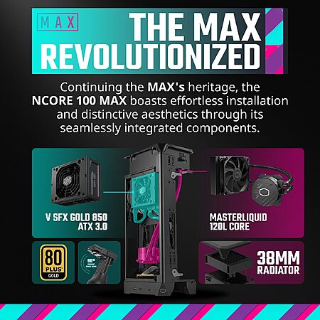 Cooler Master NCORE 100 MAX Mini-ITX PC Case|AIO|PSU Ready $199.99