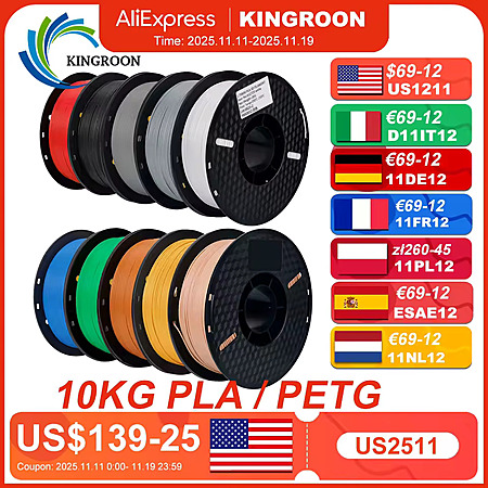 KINGROON 22LBS PETG or PLA filament 3D Printer Filament 10 Rolls 1KG 1.75MM (Black) on sale for $68.XX - $12 extra off w/ promo code