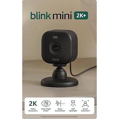 Model: Blink Mini 2K+ (newest model) – Plug-in Home & Pet Security Camera with 2K video resolution, color night vision, enhanced audio, motion detection – 2 cameras (Black)