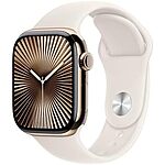 $499: Apple Watch Series 10 [GPS + Cellular 42mm] (Gold Titanium Case with Starlight Sport Band, S/M) at Amazon