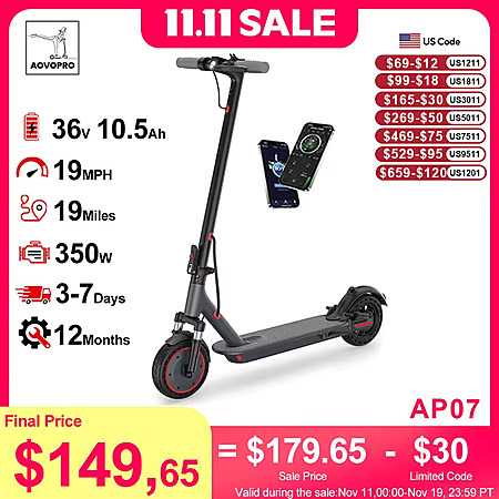 AOVOPRO AP07 Electric Scooter 10.5Ah 19mph APP Smart Control Scooter 8.5inch tire Folding E-Scooter 16miles Max Range for Adult for $150.29 with code - RDLF32