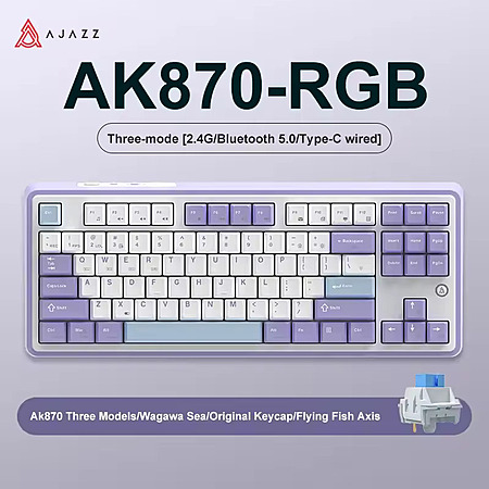 Ajazz Ak870 - TKL Wireless Mechanical Keyboard (Gray, Purple | Fish, Gift Switch) - $25