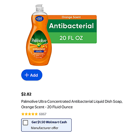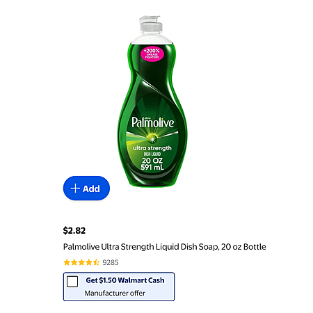 $2.82 + $1.50 Walmart Cash (limit 2) - Palmolive Liquid Dish Soap, 20 fl oz Bottle (various)
