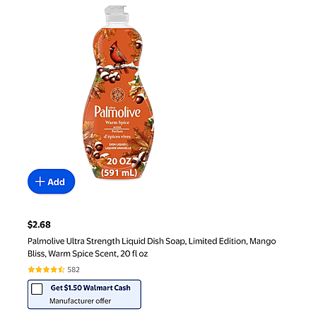 $2.62 + $1.50 Walmart Cash - Palmolive Ultra Strength Liquid Dish Soap, Limited Edition, Mango Bliss, Warm Spice Scent, 20 fl oz
