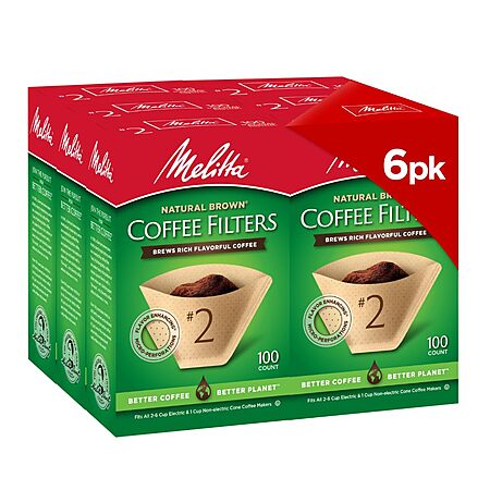 Melitta #2 Cone Coffee Filters, Natural Brown, 100 Count (Pack Of 6), 600 Total Filters $17.95 with Subscribe and Save. Free shipping with Prime or $35+