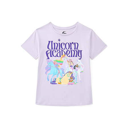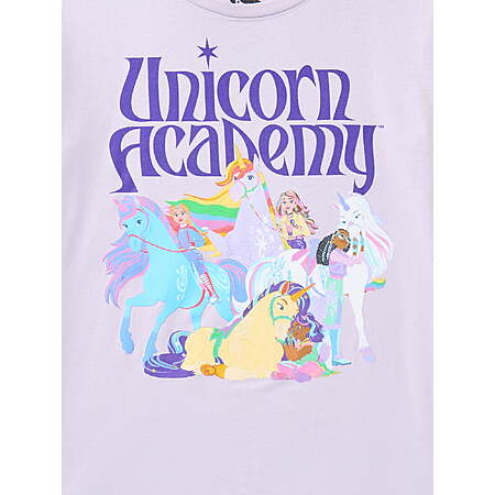 Graphic Design: Features a vibrant Unicorn Academy graphic on the front, inspired by the popular series, adding a touch of adventure to outfits.