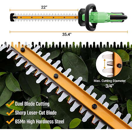 - Razor-sharp & Efficient: Featuring high-quality steel and precision-engineered 22" laser-cut blades, this electric hedge trimmer slices through branches up to 3/4 inch thick. Achieve flawless results in less time and with less effort
