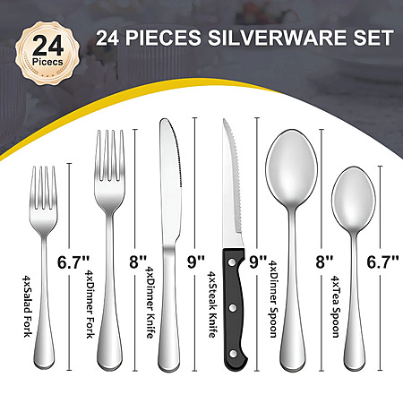Bluebow 24-Piece Silverware Set with Steak Knives at Walmart $13.79