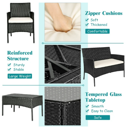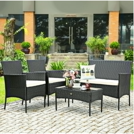 Costway 4-Piece Patio Rattan Furniture w/ Seat Cushions (Black w/ Beige Cushions) $110 + Free Shipping