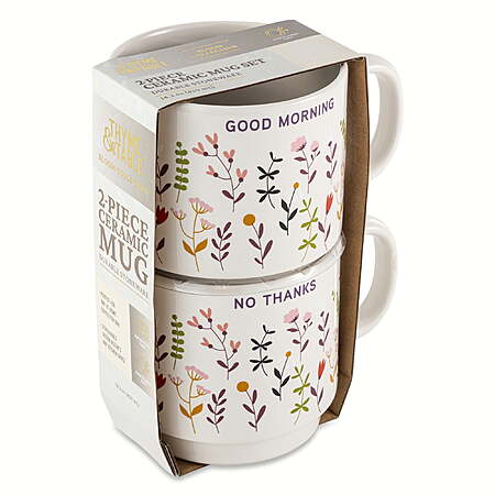 2-Piece 14.2-Oz Thyme & Table Stoneware Stacking Mugs Set (Good Morning & No Thanks w/ Flowers) $3.56 + Free S&H w/ Walmart+ or on $35+