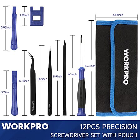 WORKPRO 12 in 1 Torx Screwdriver Set with T3 T4 T5 T6 T8 T10 Security Torx Bit & Tweezers at Amazon $7