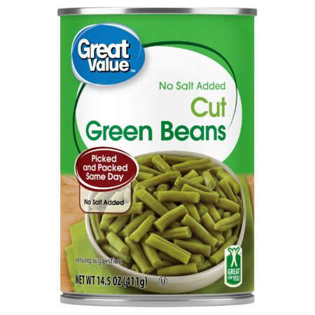 Great Value No Salt Added Cut Green Beans, 14.5 oz & More~$0.50 @ Walmart~Free Pickup Or Delivery With Walmart+