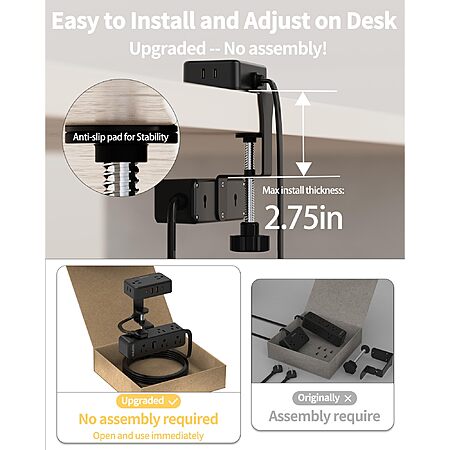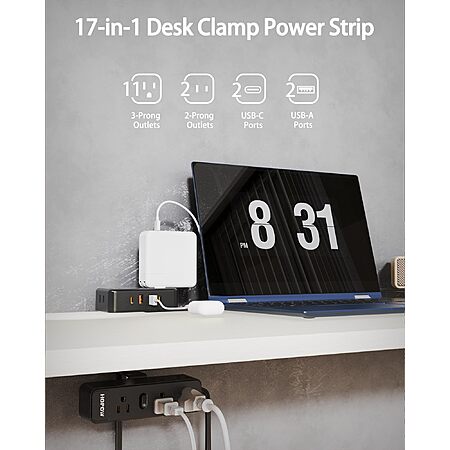 HOPOW Dual Layer Desk Clamp Power Strip w/ 13 Outlets + 2 USB Ports (2x USB-C, 2x USB-A) $32.99 + Free Shipping w/ Prime or on $35+