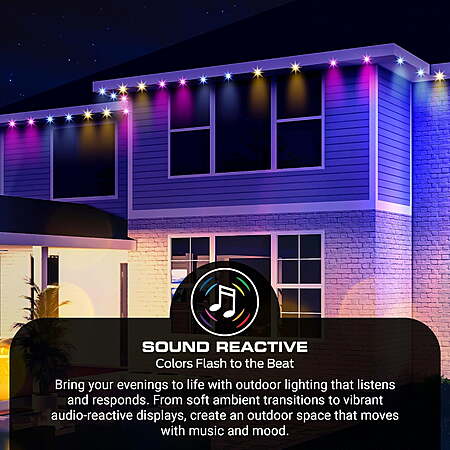 • Smart outdoor lights sync with music, offering sound-reactive lighting effects