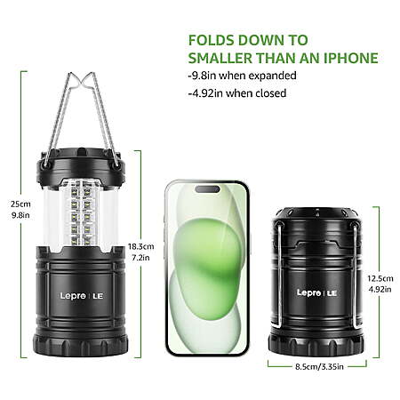 | Product Description: | ✨✨【 Sufficient Brightness 】: With a 360-degree beam angle and long lighting time, this lantern gives out sufficient light (190 lumen) to illuminate tent or room. ✨✨【 Lightweight and Portable 】: The lamp is lightweight and small when being folded, you can easily store it in your cabin, backpack or survival kit, ideal for outdoor activities or using as an emergency light. ✨✨【 Easy to use 】: Pull or push to swith on/off the latern . Collapsible design easily adjust brightness to meet your need ,conveniently fold it up for easy storage. ✨✨【 Water Resistant 】: Good for outdoor activities in light rain or snowy day. IPX4 rating means this lantern is protected against splashing water from all angle. ✨✨【 Battery Powered 】: Each lantern is powered by 3 X AA batteries. (not included), use it when power fails or go outside ,no need to wait for a few hours’ charging Keep exploring Lepro 😋😋【Recommend 】 We strongly recommend that you continue to browse the 'About the brand' section below, in order to better understand our product Product information Product Dimensions:3.55"L x 3.55"W x 7.2"H Battery Description:Alkaline Brightness:190 Lumen Item Weight:1.98 Pounds Water Resistance Level:IPX4 Water Resistant Battery Life:14 Hours Number of Batteries:3 AA batteries required. Voltage:4.5 Volts Wattage:3 watts ✨✨【 optical tips 】 Lumen is an international standard unit used to measure luminous flux, which is the total amount of light passing through a surface. Simply put, lumen describes the total amount of light emitted by a light source. It is different from illuminance or brightness and instead represents the luminous flux per unit area. In other words, lumen is used to measure the total amount of light perceived by the human eye, making it a commonly used unit to describe the brightness of a light source. If you want to explore more about optical knowledge, you can browse other products by Lepro. ✨✨ 【 Why choose Lepro?】 Lepro is deeply committed to the lighting industry, and we take pride in crafting every single light fixture with the utmost care and attention to detail. We strive to bring brightness and illumination into the lives of those who value quality and excellence, making sure that every beam of light from our products exceeds expectations and provides exceptional value. At Lepro, we do light right. This means that we go above and beyond to ensure that every light we create is of the highest quality, designed to enhance your living space and create a unique atmosphere. We understand that lighting is an essential part of your daily life, and we are dedicated to providing the best possible lighting products that will make every inch of your home shine |