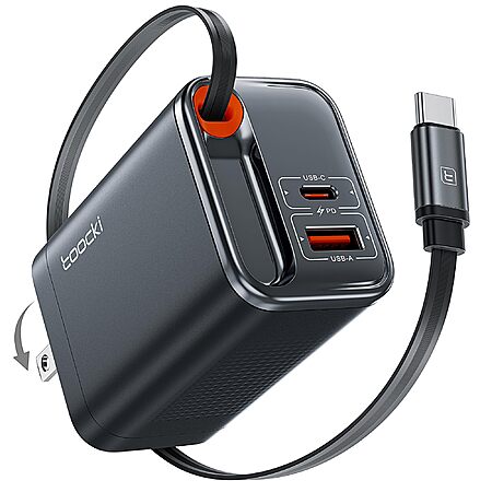 Toocki 3 in 1 Retractable Wall Charger 67W, Super Fast Charger USBC Charging Block with Type-C Cable & 2 USB Ports for $19.19 with code - 98V989Y5 $19.17