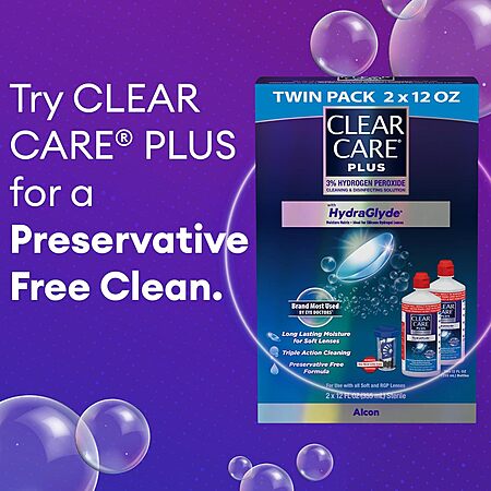 2-Pack 12-Oz Clear Care Plus Cleaning Solution w/ 3% Hydrogen Peroxide & Lens Case on sale for $15.04 - $3.76 (25%) off when you 'clip' the