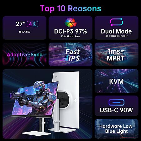 KTC 27" 4K 160Hz & FHD 320Hz 90W Type-C KVM Gaming Monitor | H27P6 $199