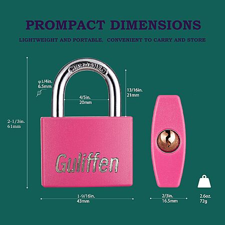 2-Pack 1-9/16" (40 mm) Guliffen Aluminum Locker Lock with Key ( Pink*2SS) $4.49 + Free Shipping w/ Prime or on $35+