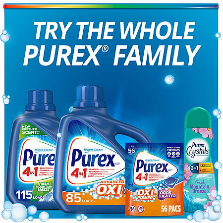 Purex Oxi Power + Odor Fighter Laundry Detergent Pacs, 56 ct + $3 Walmart Cash $9.99