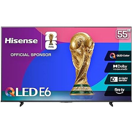 Model: Hisense 55" E6 Cinema Series QLED 4K UHD Smart Fire TV (55E6QF, 2025 Model) - QLED, AI Light Sensor, Dolby Vision · Atmos, Voice Remote with Alexa, Motion Rate 120, HDR 10+ Adaptive, Game Mode Plus