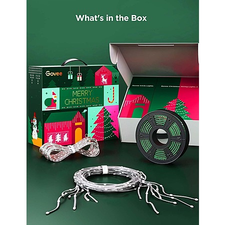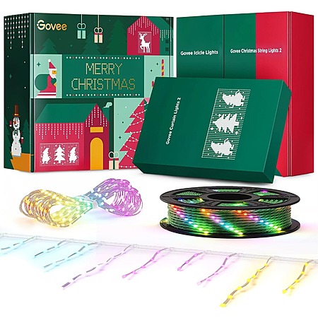 Fantastic Christmas Gift Set: Govee Holly-Jolly Christmas Bundle, includes 4.9 × 6.6ft Govee Curtain Lights 2 H70B3, 99ft Govee Christmas Lights 2 H70C5 and 33ft Govee Icicle Lights H70D1.