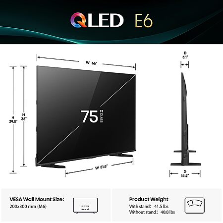$449.99*:Hisense 75" E6 QLED 4K Fire TV (2025)|Dolby Vision/Atmos|AI Light Sensor|MR120|Game Mode Plus at Amazon